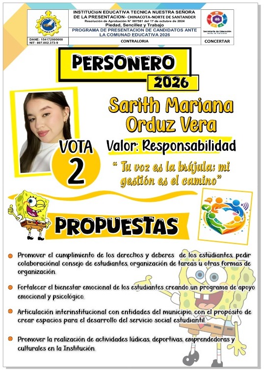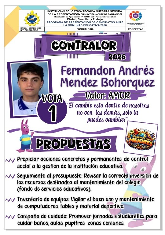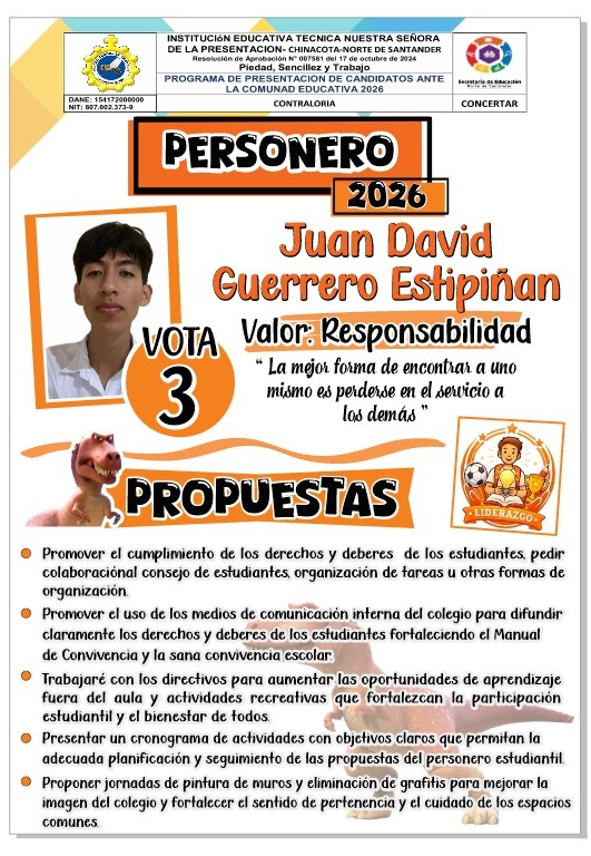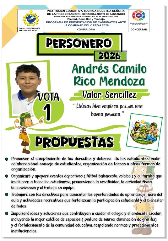 La Institución Educativa Técnica Nuestra Señora de la Presentación invita a la comunidad educativa a la Rendición de Cuentas – Vigencia 2025, un espacio de transparencia y participación liderado por el rector Sandro Javier Velásquez Luna.